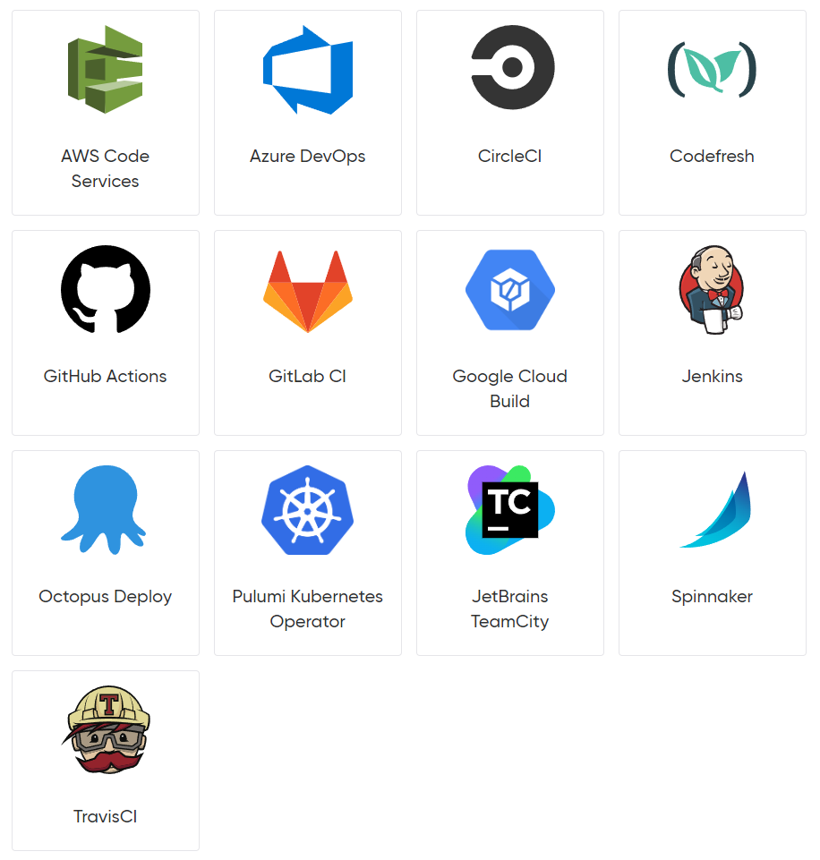 Pulumi 에서는 CI/CD를 위한 다양한 도구들과 쉽게 통하하여 현재와 동일한 프로세스를 사용하여 클라우드 인프라에 대한 업데이트를 검토, 검증 및 테스트할 수 있도록 지원한다.