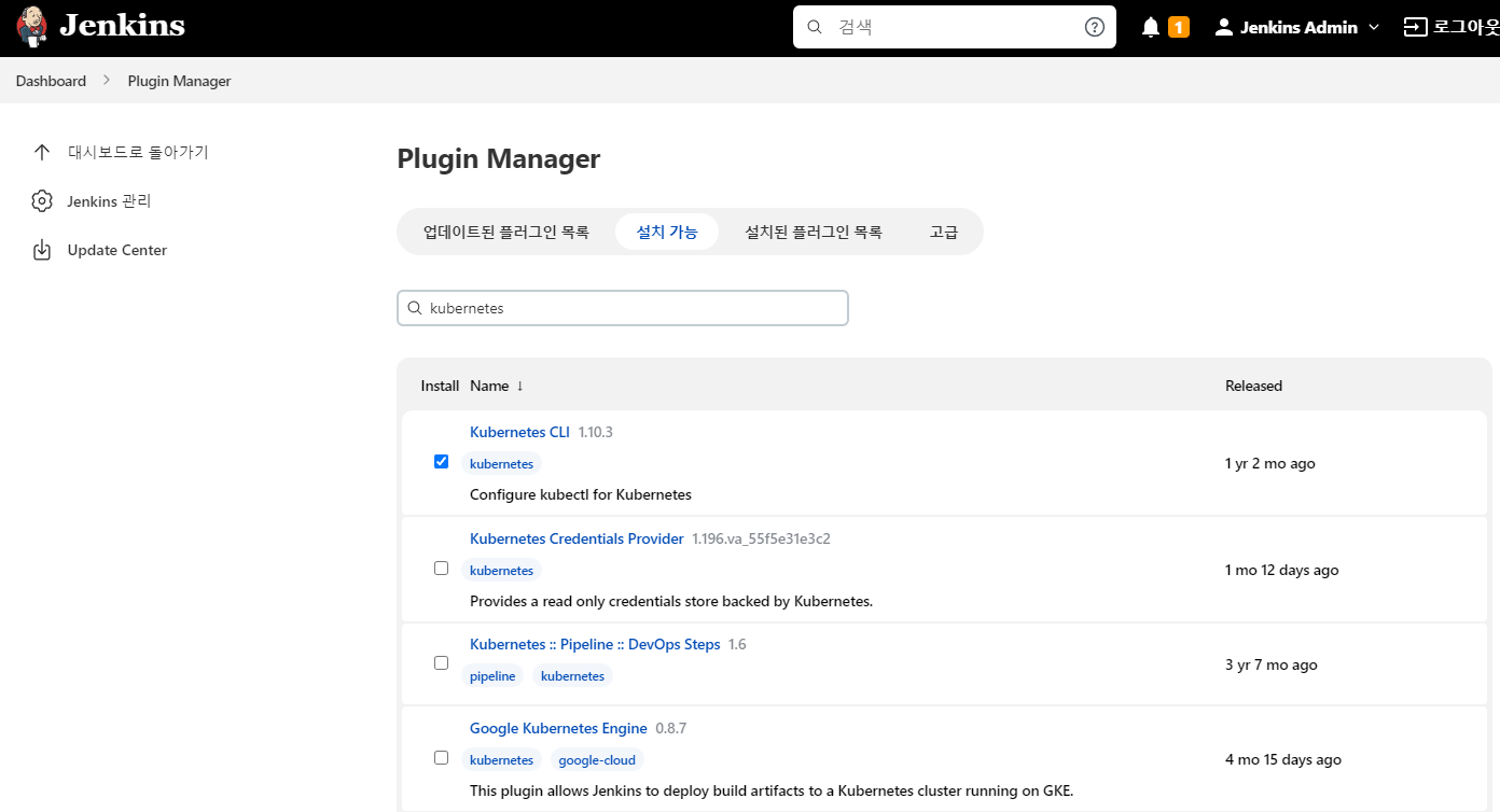 그리고, Kubernetes CLI Plugin을 설치한다.