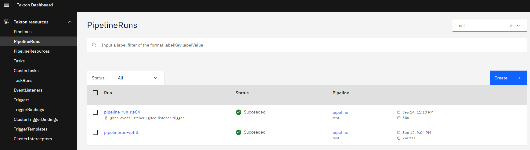 test gitea-event-listener http://el-gitea-event-listener.test.svc.cluster.local:8080 True MinimumReplicasAvailable True