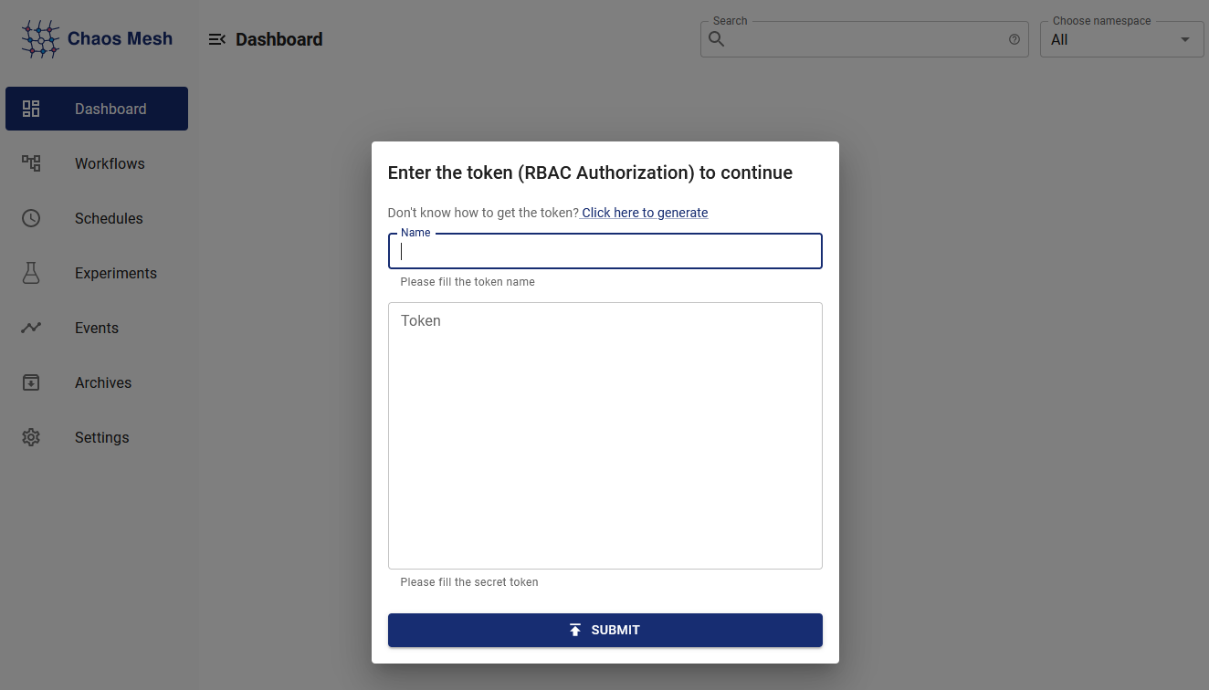 - Chaos Dashboard : Chaos Mesh의 시각화 도구. Chaos Dashboard는 RBAC 권한 관리 메커니즘도 제공한다.