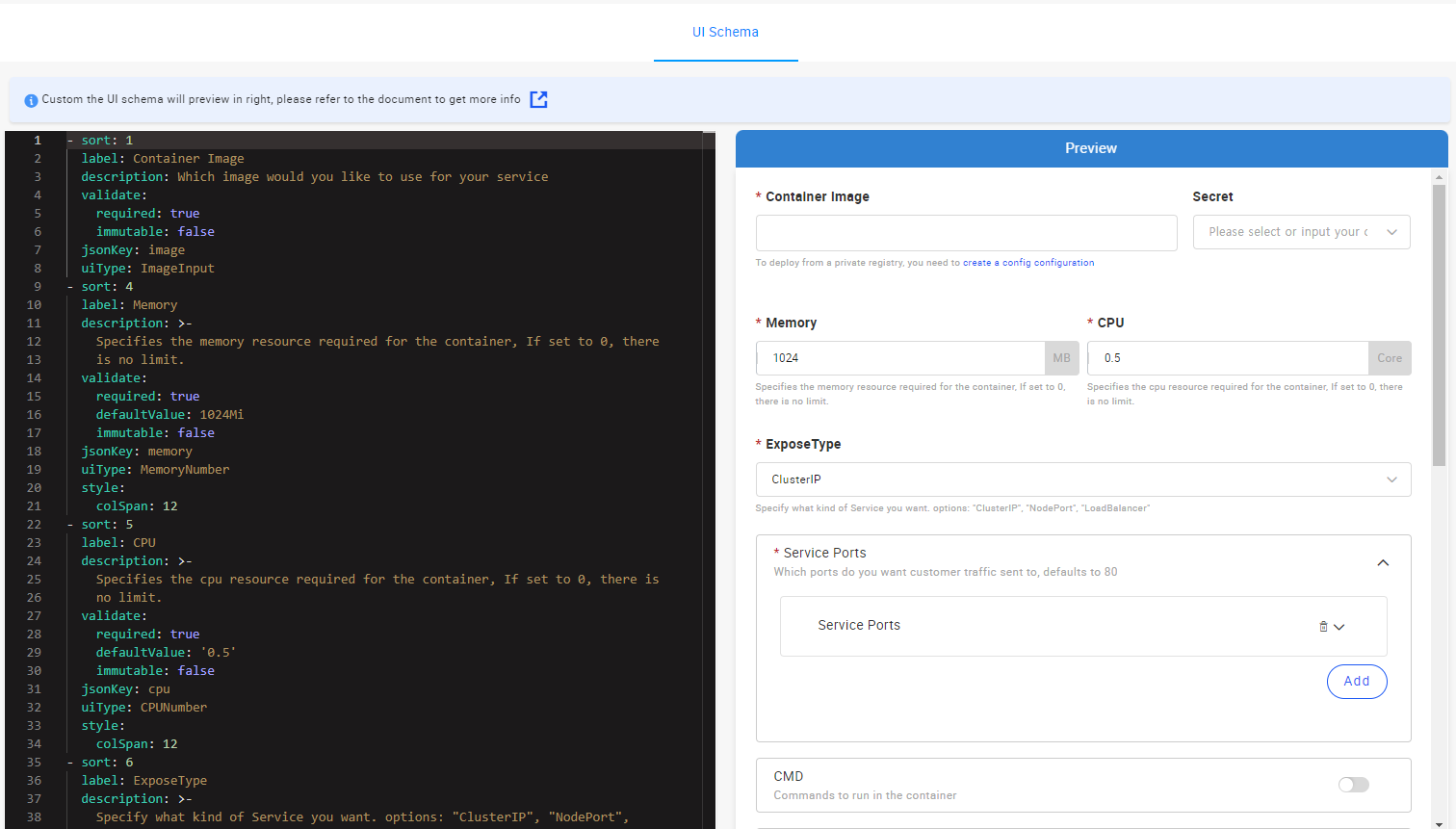 또한 UI를 사용자가 정의한 대로 표현할 수 있는 UI Schema 기능을 제공한다.