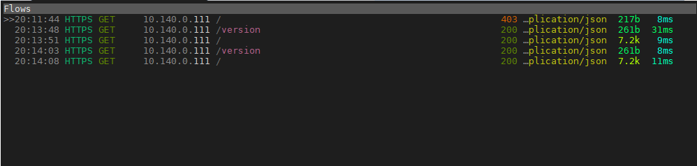 mitmproxy --listen-port=8000 --mode reverse:https://10.0.0.2:6443 --ssl-insecure