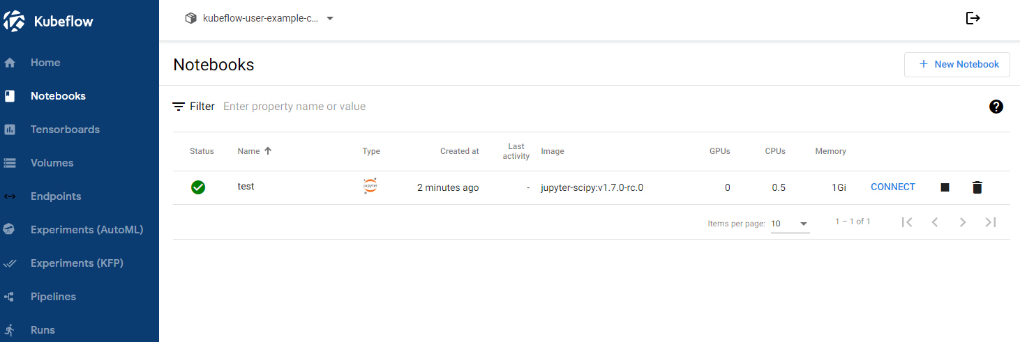 Kubeflow 대시보드에서 Nodebooks 을 선택해보자.