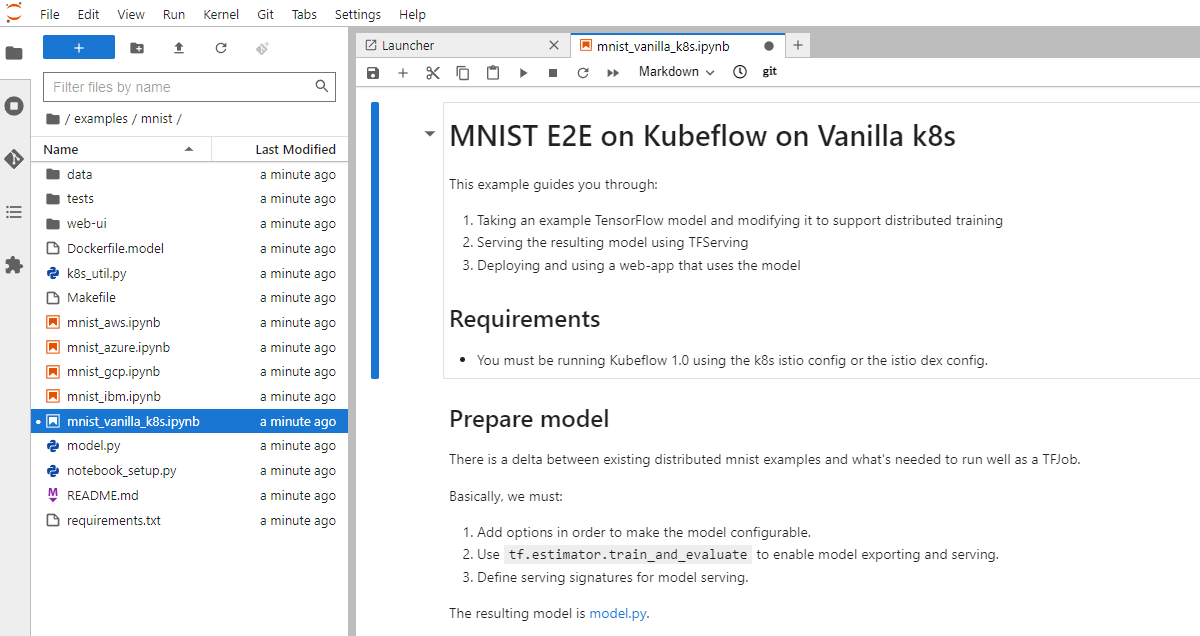 위의 예제를 notebook에서 https://github.com/kubeflow/examples.git 을 clone 해 보자.