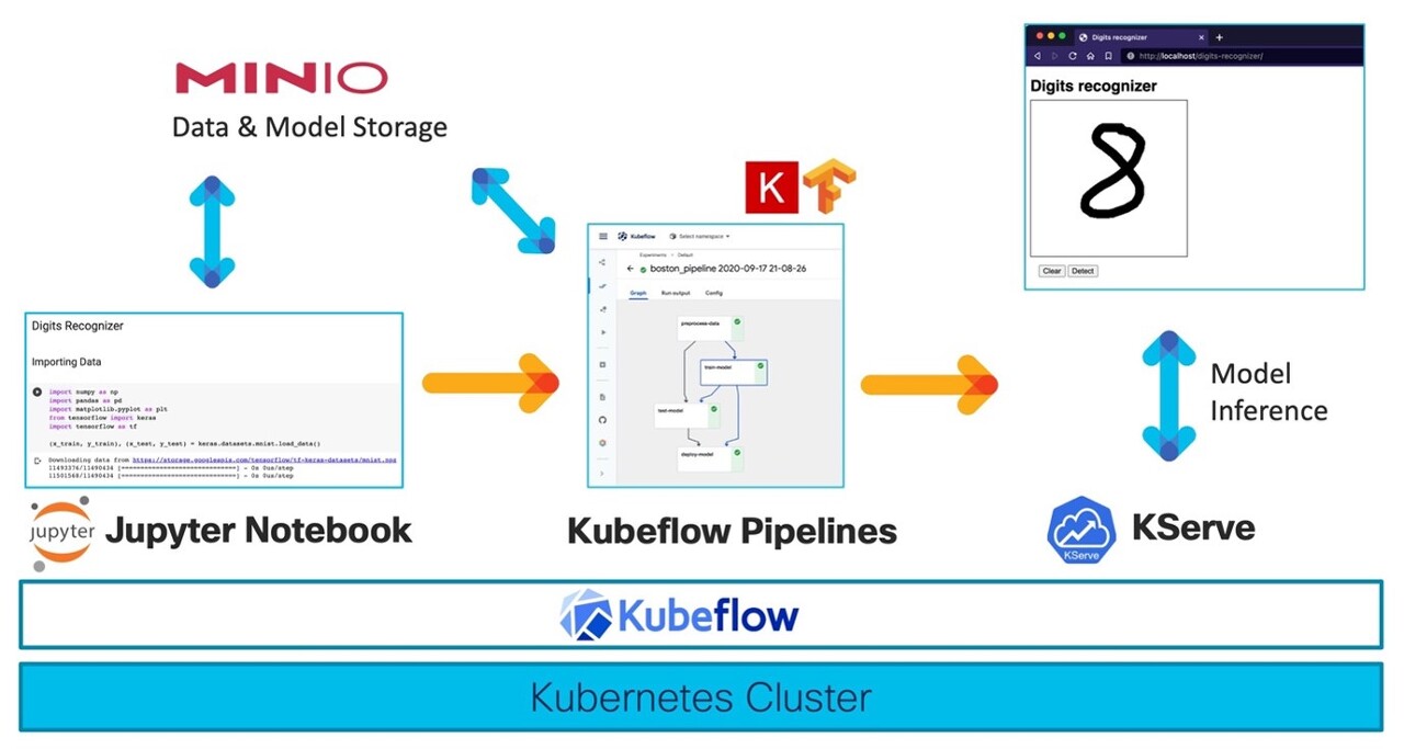 Kubeflow에서는 KTP ( Kubeflow Pipelines ), MLFlow, Seldon Core를 사용하여 고급 MLOps 파이프라인을 구축할 수 있다. MLOps 프로세스는 기본적으로 실험과 실현이라는 두 가지 주요 단계로 나누어진다. 실험 중에 데이터 과학자는 많은 아이디어를 생성하고 검증하는 데 집중한다.반면 두 번째 실현 단계에서는 가장 유망한 아이디어의 하위 집합을 선택하여 프로덕션에 전달한다.