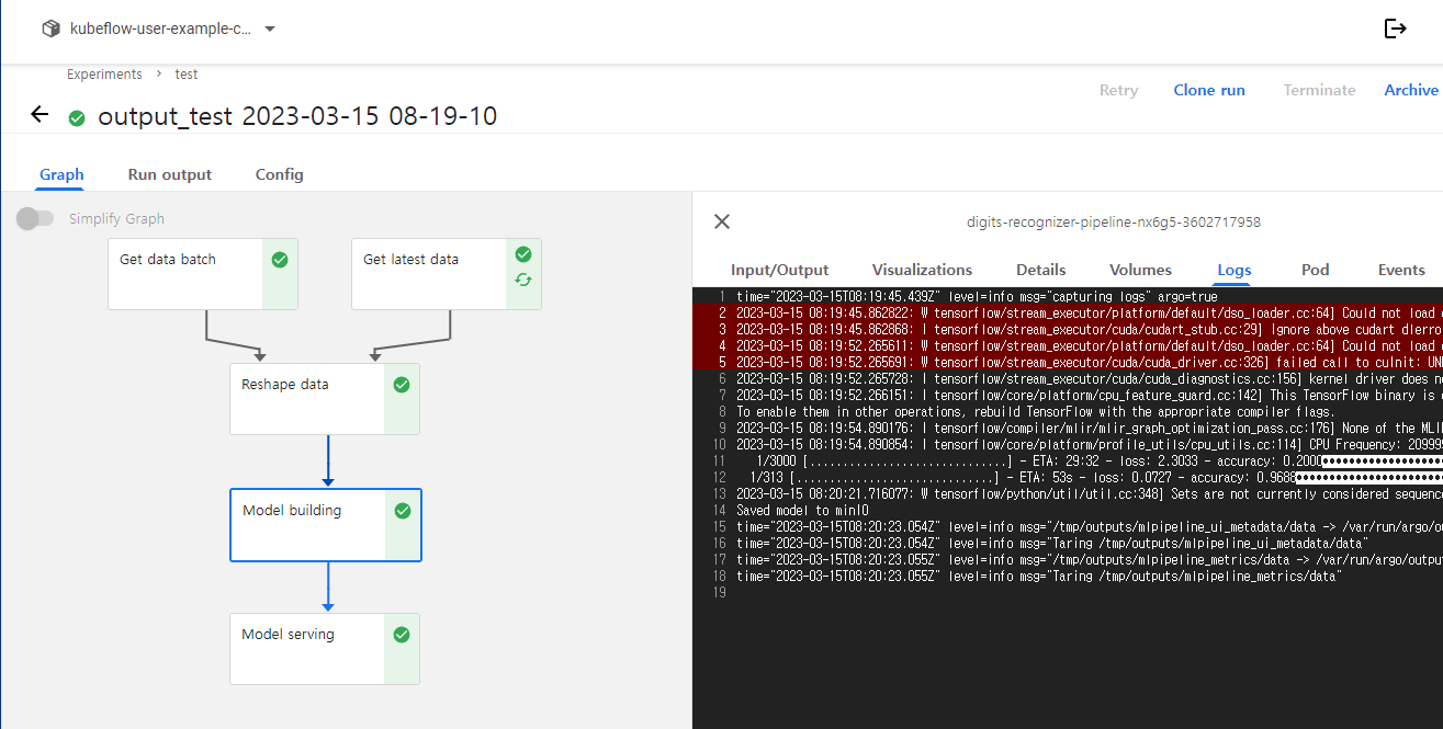 KFP(Kubeflow Pipelines) : KFP는 작업과 해당 구성, 환경 변수 및 암호를 지정할 수 있는 워크플로 엔진. 또한 KFP는 모든 작업이 적절한 실행 순서로 올바르게 예약되도록 한다.
