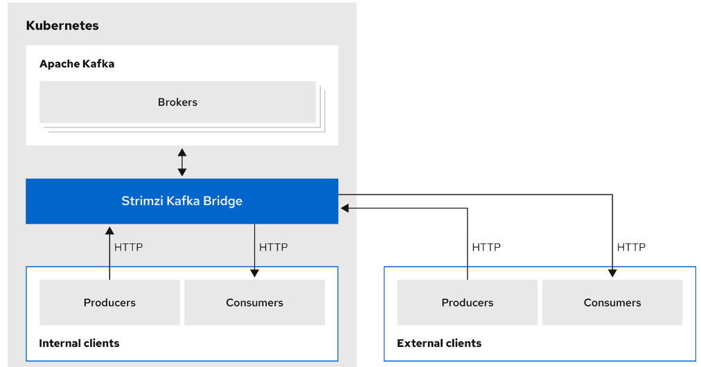 Kafka Bridge는 HTTP 기반 클라이언트를 Kafka 클러스터와 통합하기 위한 API를 제공한다.