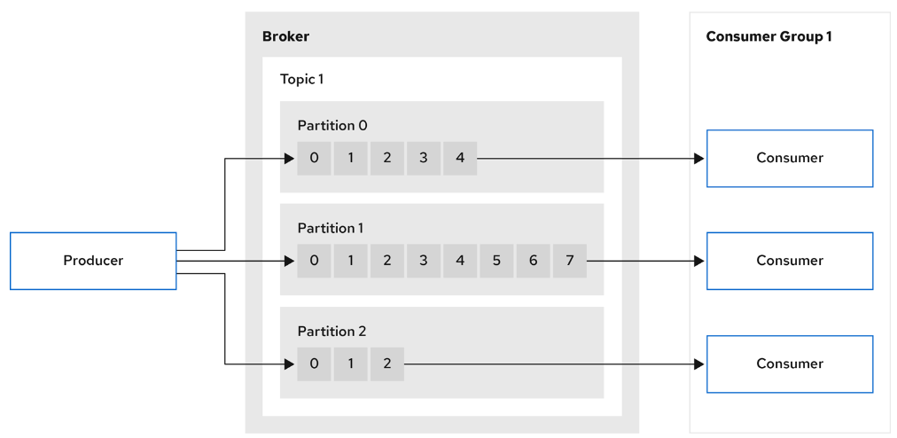 - Offsets : 파티션의 각 메시지에 할당된 고유 ID입니다. 소비된 내용을 추적하는 데 도움이 됩니다.