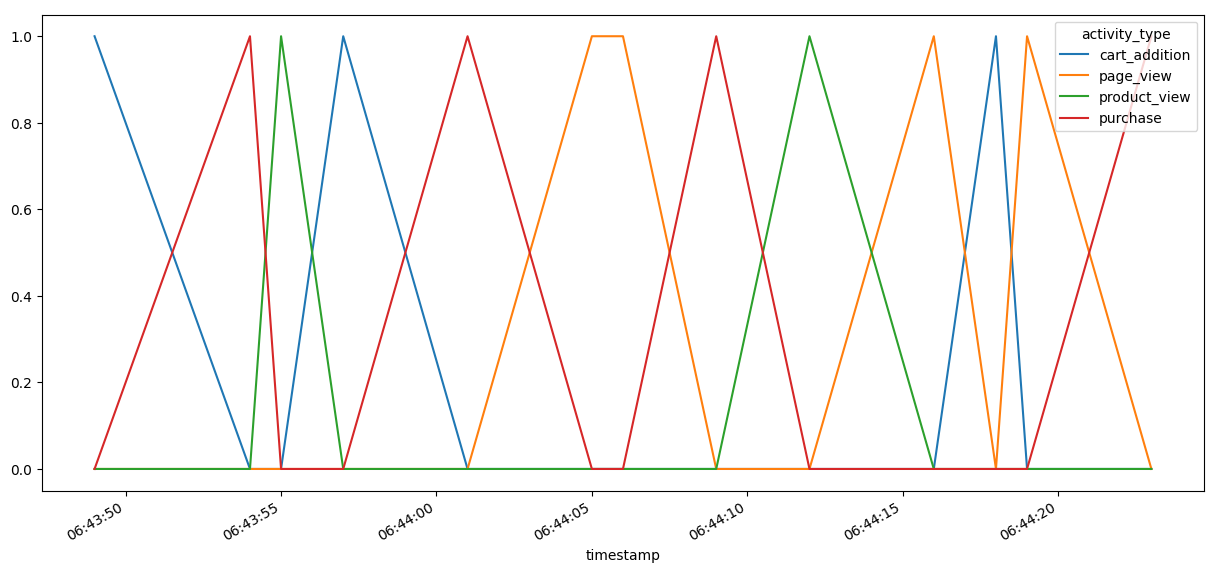activity_trends = df.groupby('timestamp').activity_type.value_counts().unstack().fillna(0)