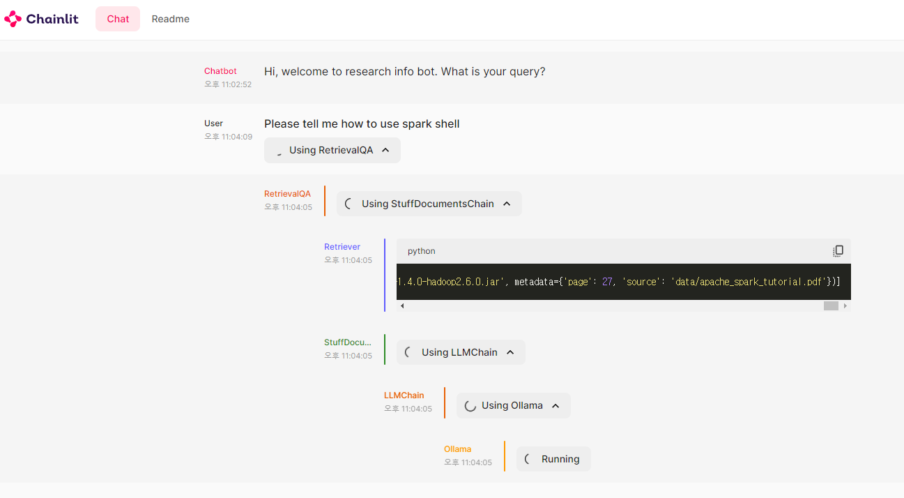 chainlit 로그는 다음과 같다.