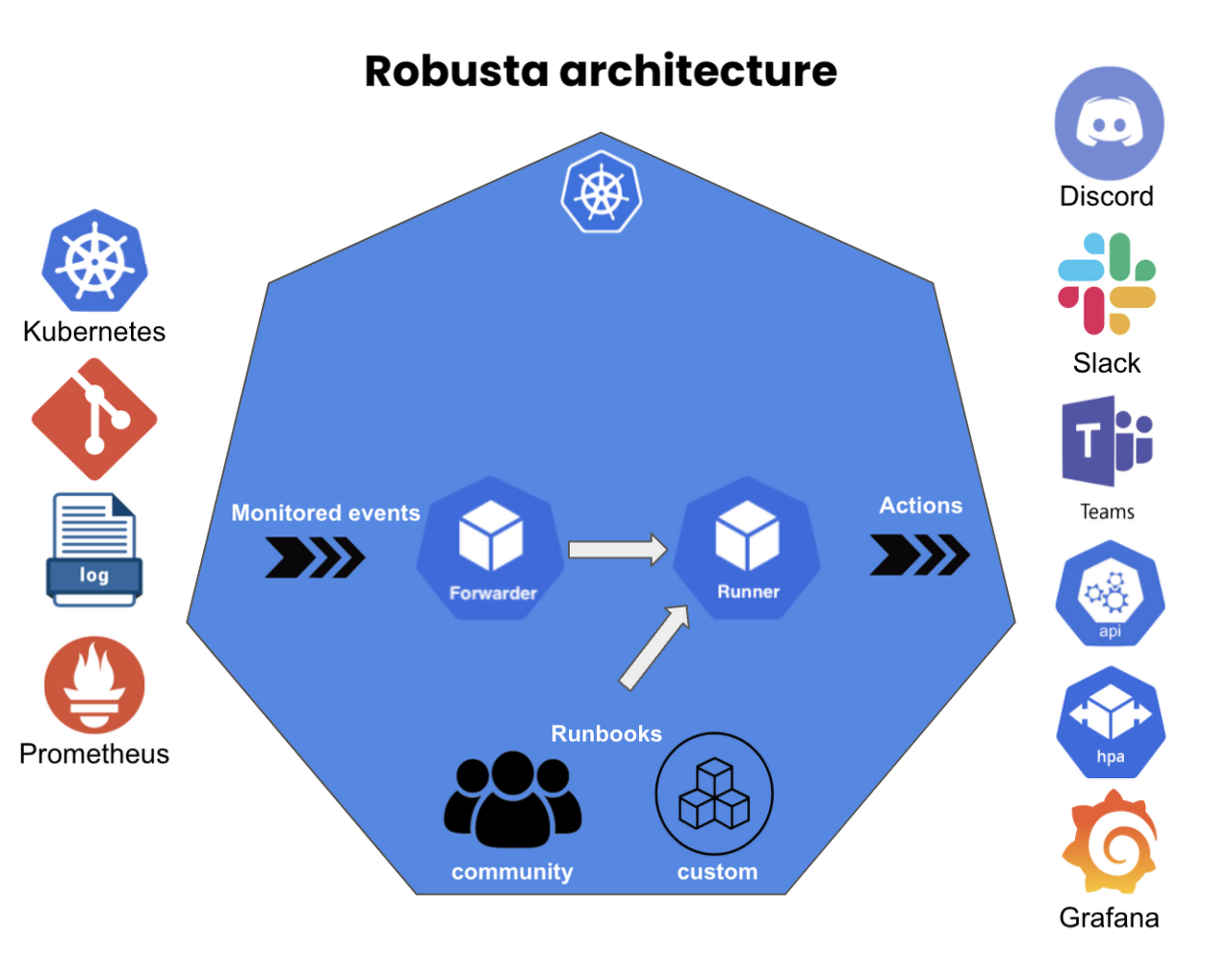 Robustra는 Kubernetes 문제해결을 위한 오픈 소스 플랫폼이다. 모니터링 스택 ( Prometheus, ElasticSearch 등)의 맨 위에 있으면 경고가 발생한 이유와 해결 방법을 알려준다.