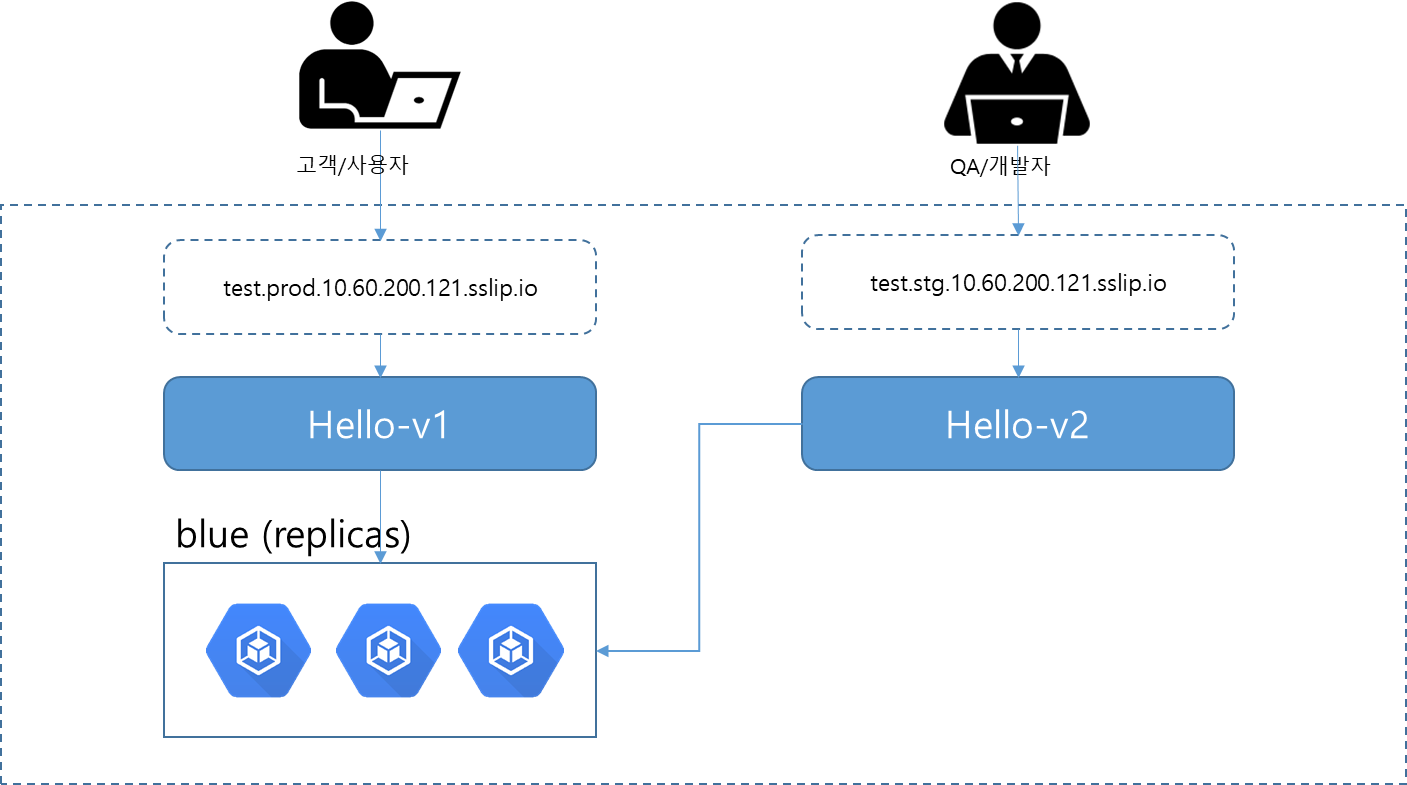 이제 test.prod.10.60.200.121.sslip.io 호출을 해보면 v2 로 이전되었음을 확인할 수 있다.