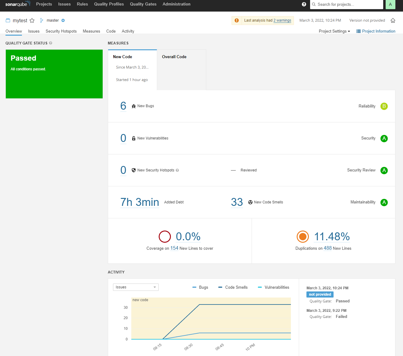 이렇게 실행하면 아래와 같이 SonarQube console에서 결과를 조회할 수 있다.