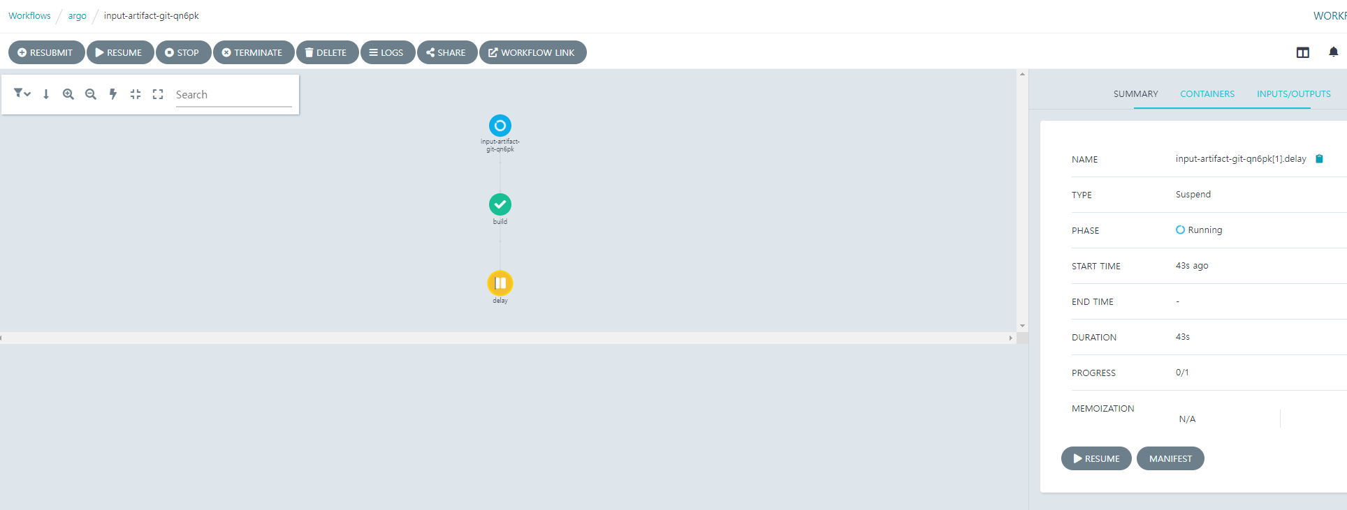 Resume 버튼을 클릭하면 pipeline이 종료된다.