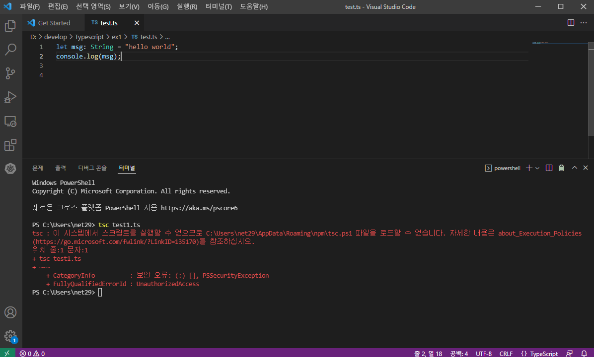 PS D:\develop\Typescript\ex1> tsc test.ts