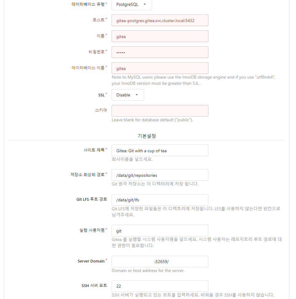 gitea는 helm chart로 설치할 수 있다. 하지만, db (mysql, postgresql 등)를 설치해야 하고, 볼륨 등 values 값들 세팅이 필요하기 때문에 이번에는 일반 yaml로 설치해 보도록 하겠다.