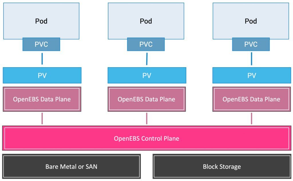 OpenEBS 는 Kubernetes 작업자 노드에서 사용 가능한 모든 스토리지를 로컬 또는 분산 Kubernetes 영구 볼륨으로 바꾼다. OpenEBS는 애플리케이션에서 빠르고 내구성이 뛰어나고 안정적이며 확장 가능한 Container Attached Storage 가 필요한 Kubernetes Stateful Workloads를 쉽게 배포할 수 있도록 지원한다.