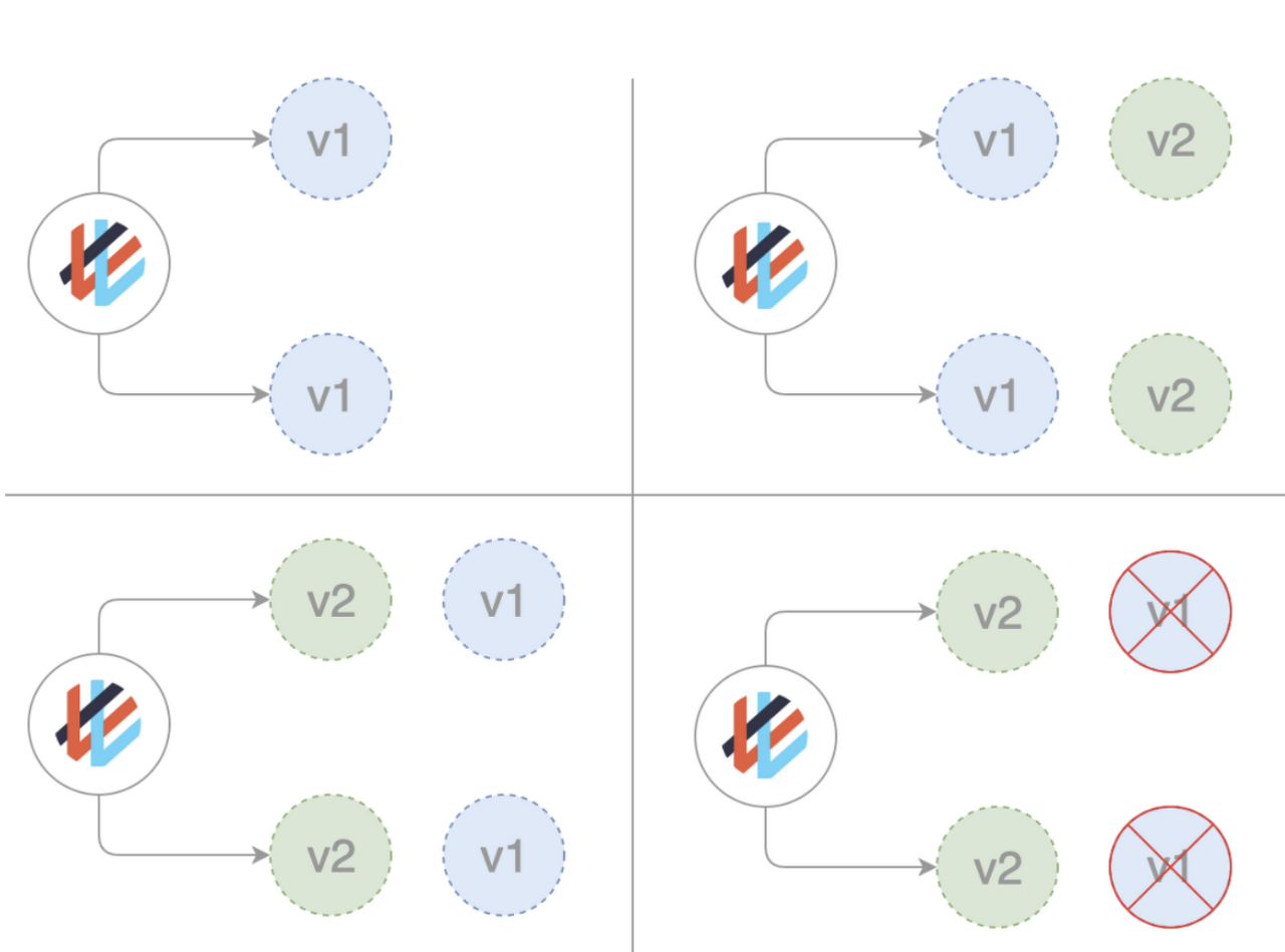 RollingUpdate는 이전앱과 신규앱이 공존하는 시간이 발생한다. 또한 롤백을 시도할때도 복구 시간이 소요된다.