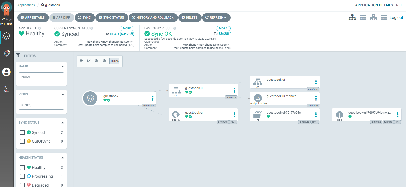 Service test guestbook-ui Synced Healthy service/guestbook-ui created
