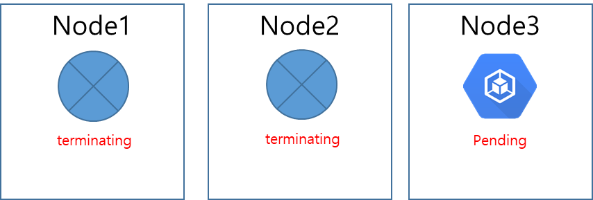 이 때, 관리자가 상태를 점검하지 않고, Node2 를 Drain할 수 있다. 그럼 Drain 순간 아래와 같은 상태가 될 수 있다.