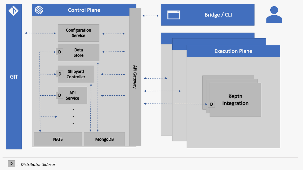 Keptn은 Kubernetes에서 실행되는 지속적 전달 및 자동화된 작업을 위한 이벤트 기반 제어 평면이다. Keptn 자체는 느슨하게 결합된 구성 요소의 이점과 다른 구성 요소 및 서비스를 쉽게 통합할 수 있는 유연한 설계를 통해 이벤트 중심 접근 방식을 따른다. Keptn이 이해하는 이벤트는 여기 에 지정되며 CloudEvents 사양 v2 를 따른다.
