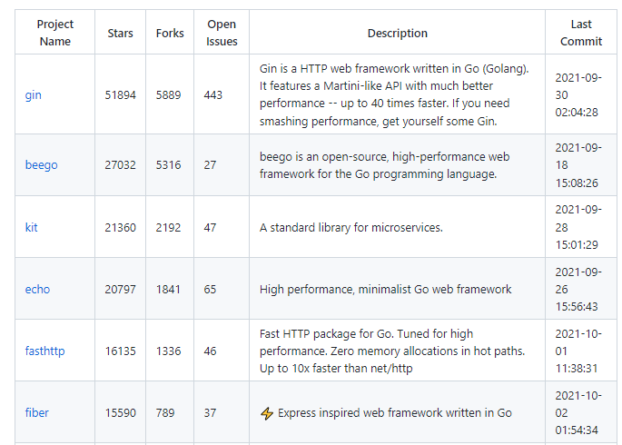 Gin은 다른 Web Framework보다 많은 Star를 가지고 있는 Framework이다.
